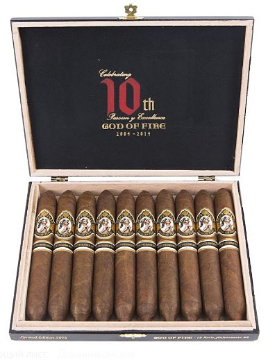 God of Fire Serie Aniversario Это самые мягкие сигары из линейки God of Fire, идеально подходящие для утреннего, дневного покура. Сигары God of Fire Serie Aniversario 60 имеют сладкий и слегка пряный вкус с нотками корицы. Покровный лист Эквадор. Начинка и связующий лист Доминиканские.