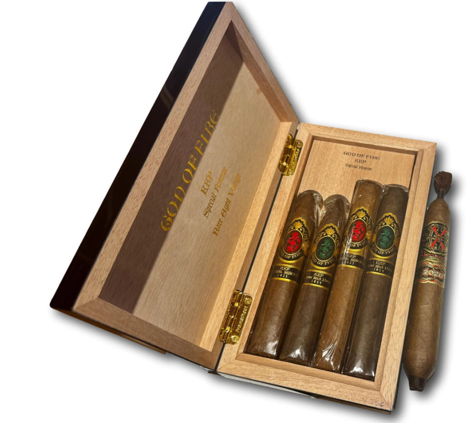 Назначение: Идеален для коллекционеров, ценителей высшего класса и для особых церемониальных случаев. Позволяет глубоко оценить и сравнить вершины табачного искусства от God of Fire.